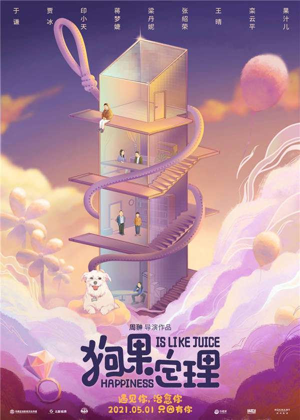 由姜瀚总制片,周翀执导,于谦、贾冰、印小天、蒋梦婕、梁丹妮等联袂主演的温暖萌宠治愈喜剧电影《狗果定理》,发布手绘版定档海报,宣布2021年5月1日劳动节全国上映。海报风格温暖可爱,在洋溢着幸福感的天空中,一只小狗、一条狗绳,串起了百味人生。本片在疫情大背景下,以朴实细腻的笔触,描摹了都市中不同年龄阶段的人群之生存情感困境,涉及“都市年轻人生存压力”“重组家庭”“中年危机”“黄昏恋”等现实主义话题,并以萌宠治愈人心贯穿全片,“落水狗”、“舔狗”、“二手狗”等趣味话题更令人回味无穷。于谦、贾冰、印小天等实力演员也首次联手,尤其是两位喜剧大咖,返璞归真回归贴地气的平民小人物,为本片平添了不少喜剧色彩,加上“狗界一哥”萌宠果汁儿的加盟,传递出温暖治愈的正能量。强大实力阵容加上萌宠题材,使得本片有望成为今年五一档一股温暖人心的清流。