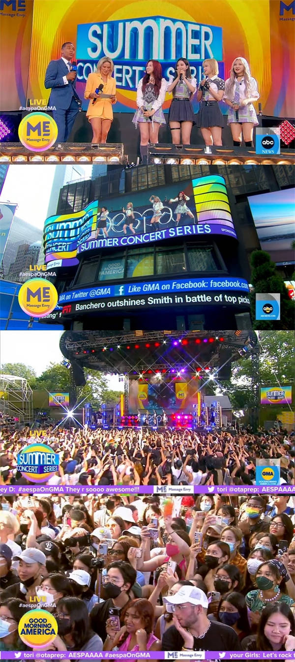 aespa出演了7月8日(当地时间)凌晨开始在美国纽约曼哈顿中央公园的大型公演场Rumsey Playfield举办的“GMA 2022 Summer Concert Series”,作为K-POP女子组合首次出演,以强烈的音乐和舞蹈表演吸引了当地音乐歌迷们的耳目。
