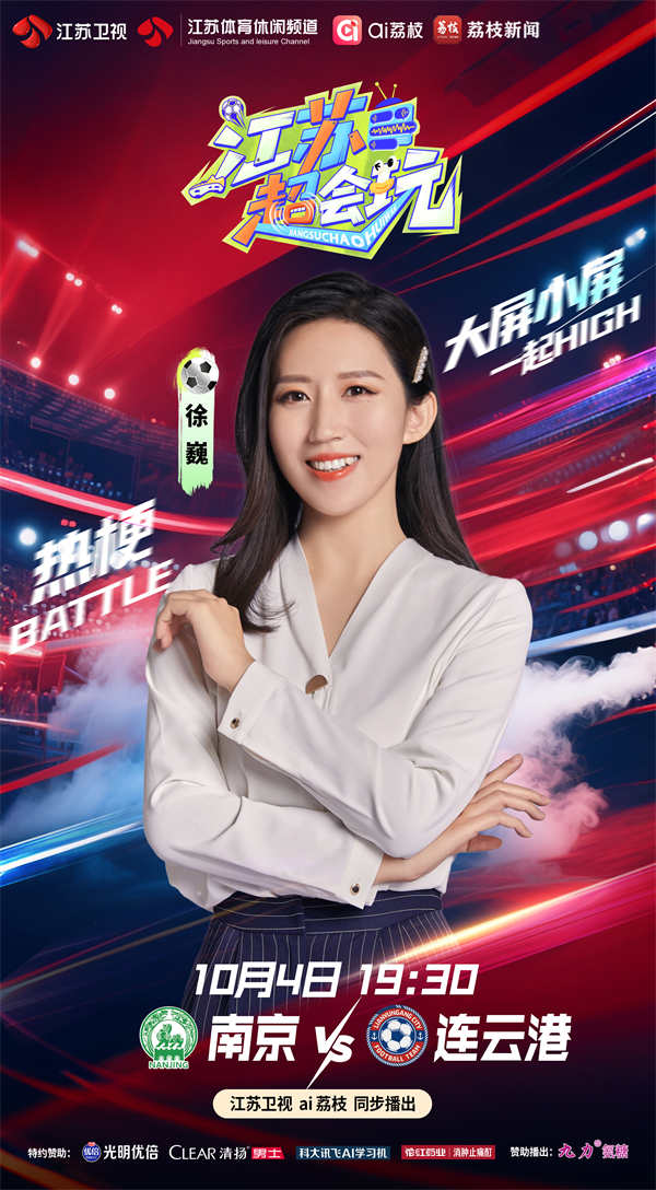 10月4日,“苏超”淘汰赛阶段的比赛将全面打响。首场四分之一决赛,由南京队坐镇主场南京奥体中心体育场迎战连云港队。在此前的常规赛中,南京队曾在客场3:0轻取连云港队,比赛近乎呈现“一边倒”的态势。但淘汰赛的赛场不同于常规赛,一场定胜负的赛制让一切变得皆有可能。《江苏超会玩》将在19:30对本场比赛进行现场直播。江苏卫视主持人李响将搭档江苏广电总台音乐广播主持人徐巍,与大家一同见证首个四强席位的归属。