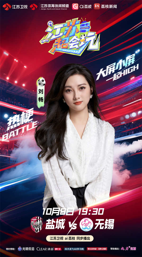 今晚,“苏超”最后一场四分之一决赛将在盐城奥体中心体育场打响,对阵双方将是盐城队和无锡队。此前在常规赛中,无锡队曾在客场2:0战胜盐城队,终结对手主场零失球纪录。此番在淘汰赛中再度相遇,是无锡队背靠背“双杀”成功,还是盐城队上演“复仇”好戏?《江苏超会玩》将于19:30对本场比赛进行直播。届时,江苏卫视主持人李响将搭档体育解说员刘畅,和大家一起看球聊球,在热血的绿茵场竞技中度过国庆假期的最后时光。