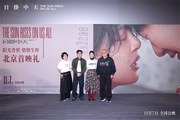 电影《日掛中天》于昨日举行"阳光普照 熠熠生辉"北京首映礼。影片导演兼编剧蔡尚君、领衔主演辛芷蕾、张颂文及总制片人马双共同出席,与满场观众展开真诚对谈,分享作品背后深沉的情感脉络与艺术追求。现场气氛温暖而热烈,多位业内同仁现身支持,就影片呈现的生命困境与人性深度展开探讨。