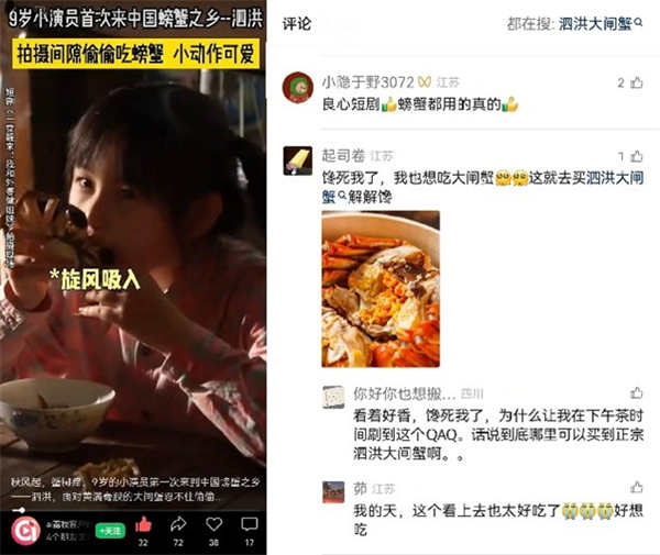 拍摄阶段,剧集凭借独特题材与浓厚本土文化氛围收获高关注度。报名参演的泗洪本土网红达人,每日在社交平台用短视频分享拍摄心得;主创团队精心策划的“网红”式转场视频、演员幕后花絮、非遗技艺拍摄特辑、蟹塘实景纪实等物料,在全网广泛传播后引发大量讨论。不少网友留言 “等不及想看祖孙俩的穿越故事”“看完花絮就想去泗洪走走”,未播先火的热度显著。主题MV《泗梦惊鸿》将顺山集遗址、洪泽湖风光等文旅印记融入亲情叙事,让地域文化与情感共鸣深度绑定,引爆多平台口碑。聚焦泗洪地域特色的系列策划“剧说泗洪”,以短剧为核心载体,深挖背后的非遗文化、特色农产品与文旅资源。评论区满是“要个链接”“现在就在看票了”的种草反馈。