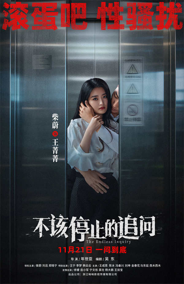由年世亚导演,吴东编剧,柴蔚、刘迅、郑晓宁领衔主演,王宁、李梦特别出演的反性骚扰电影《不该停止的追问》因其鲜明大胆的创作态度和坚决抨击恶行侵害的立场,引发多方关注和热议。影片今日发布了全新的“曝光偷窥”版角色海报,以电梯内外被凝视与审视两个截然不同的角度为切入点,矛头直击性骚扰等恶行侵害行为,对其进行勇敢质问并加以鞭挞。电影聚焦社会现实议题,不仅引发了网友的热议:“这才是最该拍的题材!”还得到了法治日报、中国妇女报、中国妇女网等相关媒体的一致评价:“以勇气照亮沉默的角落”,“完成了深刻的思考”。在之前的超前观影中,影片也收到了来自律师、心理学家、观众等不同群体的讨论,比如“反对职业污名”、“女性情谊动人”、“对家长有警示”等诸多热评不一而足。电影《不该停止的追问》现已开启预售,并将于11月21日全国公映,敬请期待!