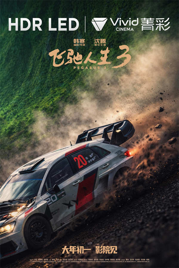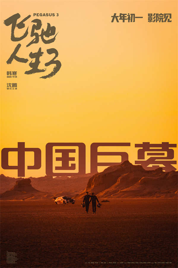 电影《飞驰人生3》剧组为给观众呈现更加震撼的视听冲击,辗转甘孜九龙、德令哈、宁波、上海等多地取景拍摄,无论是海拔4000米以上的川西秘境,还是原始壮阔的青海戈壁,皆化作片中亚洲最难洲际比赛“沐尘100”拉力赛的实景。在编剧兼导演韩寒看来,高海拔地区的自然地形与多变气候不仅给比赛增添了张力,更提供了绝佳的视觉效果,让人沉浸到高山地貌与植被带来的震撼之中。同期发布的IMAX、CINITY、中国巨幕、杜比影院、SCREENX、HDR LED、DTS:X、4DX多款制式海报淋漓尽致地展现了新赛道沿途的震撼场景。IMAX制式海报中,赛车在壮阔的沙地上急速飞驰,车尾卷起滚滚沙尘,拖出长长轨迹,将竞速感拉满之余,亦让人大开眼界。CINITY制式海报聚焦比赛冲线的激烈场面,在经历漫长征途之后,赛车的车况并不完美,但终点已然在望,引擎不熄,斗志不灭。中国巨幕制式海报呈现了神奇的雅丹地貌,天地辽阔壮美,张驰和孙宇强并肩而行,每一步都充满坚定与热血。杜比影院制式海报采用对称构图,一条笔直的赛道在戈壁滩上延伸,张驰驾驶的赛车迎面而来,让人仿佛听到引擎的轰鸣与风的呼啸。SCREENX制式海报中,连绵的深红山脉高耸,极具视觉冲击力,赛车无惧复杂地形,气势磅礴地穿梭其间,临场感十足。HDR LED制式海报中,赛车在原始的砂石路面上疾驰,车尾灯光犹如喷薄而出的尾焰,尽显一往无前的气势。DTS:X制式海报和4DX制式海报则选用了赛车雨中漂移的画面,聚光灯下这辆车就是这条赛道上的主角,车尾摆动溅起雨水,仿佛一场酣畅淋漓的热舞。更大的银幕、更鲜活的色彩、更逼真的声音,多种特效制式将在马年新春带给观众一场身临其境的大银幕飞驰体验!