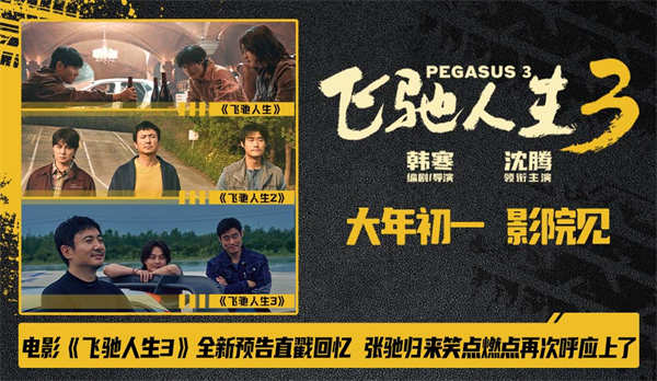 电影《飞驰人生3》延续该系列热血逐梦的赛车题材和欢笑感动的情感共鸣,讲述了张驰与新老朋友一起笑闯人生新赛段,开启爽燃新征程的故事。全新发布的“呼应上了”版预告将系列前两部经典镜头与第三部画面交叉剪辑,熟悉的老伙计悉数回归,经典名场面一个个闪回,让无数观众的回忆重新升温,完成了与张驰的情感连接。七年过去,“铁三角”仍然并肩作战。赛车老将张驰,不断重整旗鼓奔赴赛场,曾经残破报废的冠军车再一次被赋予“全新的身体”,承载着他心中从未熄灭的梦想。“最优秀的领航员”孙宇强,让很多观众第一次知道领航员“等于赛车手的眼睛”的意义。记星,“铁三角”中沉默寡言却行动力MAX的机械师,“热爱工作”,随身携带修车工具。从曾经在赛车服上写“求赞助”到七年后的商务球局,“铁三角”持续用爱发电拉赞助。第二部中跟张驰成为对手的叶经理此次再度转变,选择补足这个团队缺少的一环:一个免费的车队经理。此外,成为队友的林臻东也在比赛中为张驰开道。众人齐心协力征战更高的世界级赛道,张驰不服输的冲劲,让所有人都感受到“那个熟悉的他,回来了”,而他的那句“我一定会和你呼应上的”亦仿佛是对观众的承诺。七年时光流转,热血情谊不变,笑点、燃点全都再次“呼应上了”。