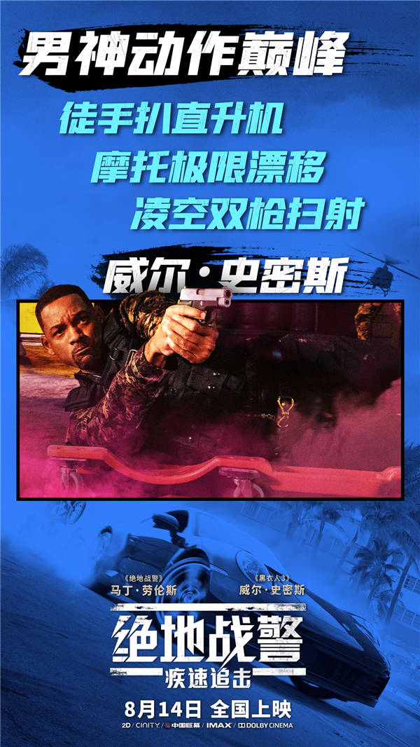 《绝地战警:疾速追击》由阿迪尔·埃尔·阿比和比拉勒·法拉赫联合执导,《加勒比海盗》系列好莱坞金牌制作人杰瑞·布鲁克海默倾力加持,“史皇”威尔·史密斯(《当幸福来敲门》、《独立日》、《黑衣人》)、马丁·劳伦斯(《绝地战警》系列)领衔主演、凡妮莎·哈金斯(《地心历险记2:神秘岛》)、亚历山大·路德韦格(《饥饿游戏》)等明星联袂出演。电影8月14日全国上映,作为同档期内唯一好莱坞新片,现正火爆预售中,抢先购票精彩不容错过。
